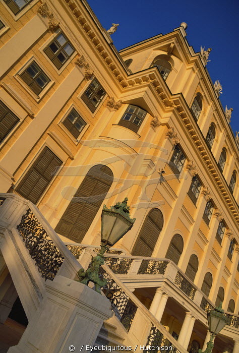 Austria, Vienna, Schonbrunn Palace, golden evening light on the rear facade.