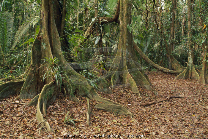 Cockscomb Basin Wildlife Sanctuary. Buttress roots of Rainforest Kaway Tree in area of seasonally flooded forest.Pterocarpus officinalis