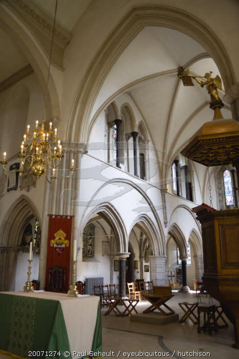 ENGLAND, Hampshire, Portsmouth, The Anglican Cathedral Church of St Thomas of Canterbury started in the 12th Century consecrated in 1927 and completed in 1980 with a side chapel pulpit and altar seen from the choir.