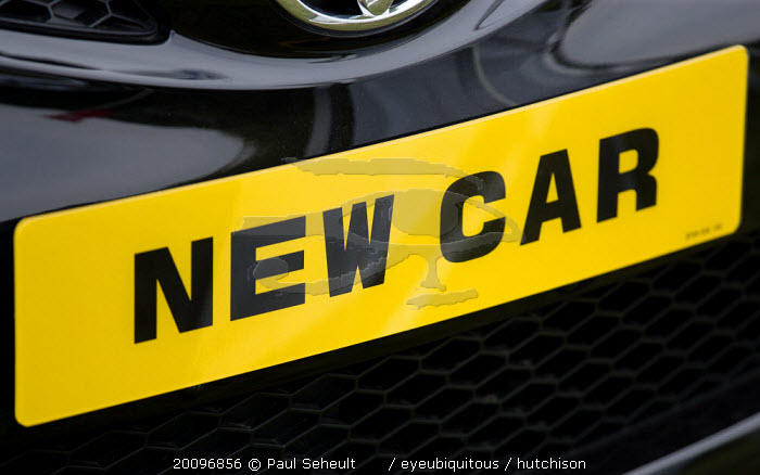 Findon village Sheep Fair Registration plate on a car that reads New Car.Great Britain Northern Europe UK United Kingdom British Isles European