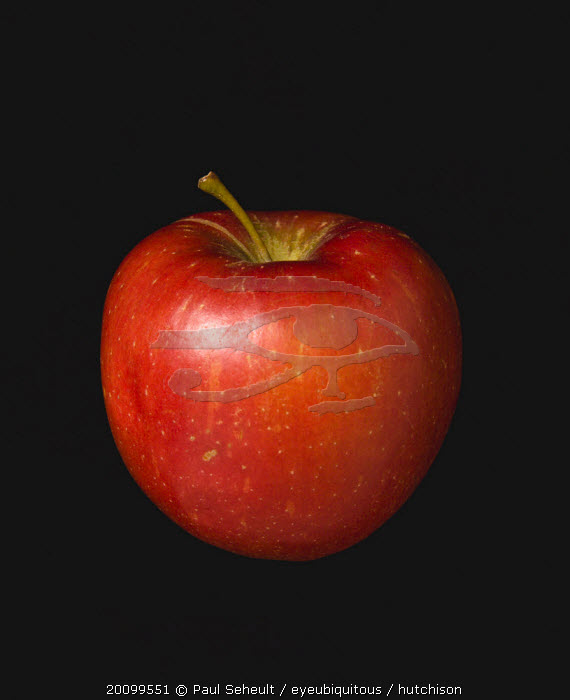 Food, Fruit, Apples, One single ripe red apple against a black background.
