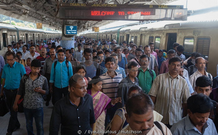 India, West Bengal, Kolkata, Commuters at Sealdah Railway Station.