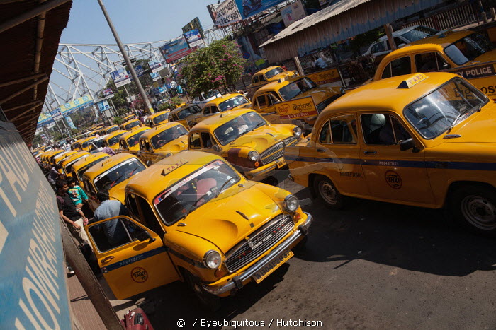 India, West Bengal, Kolkata, Taxi rank at Howrah Railway Station.