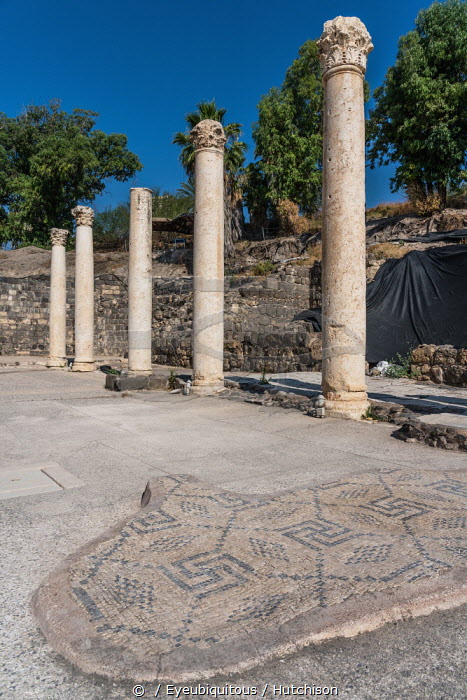 Israel, Bet She'an, Bet She'an National Park, A mosaic tile floor in the ruins of the city of Scythopolis, a Roman city in northern Israel. During the Roman era, it was one of the most important of the Decapolis cities.