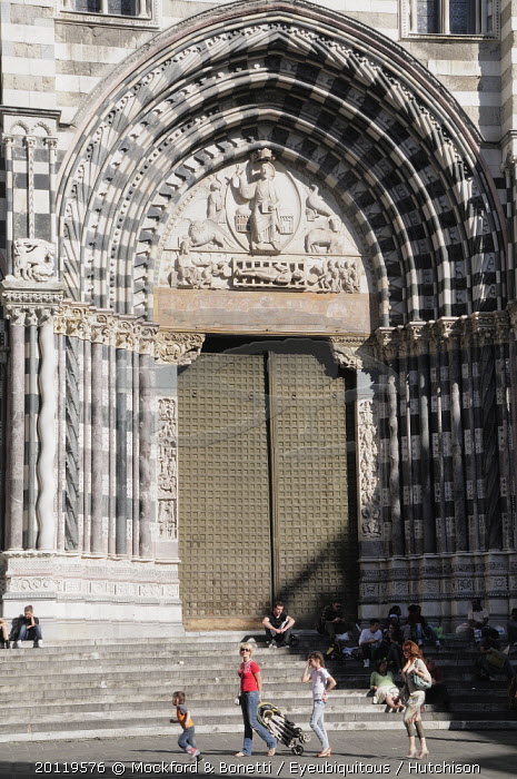 Italy, Liguria, Genoa, Duomo steps & doors.