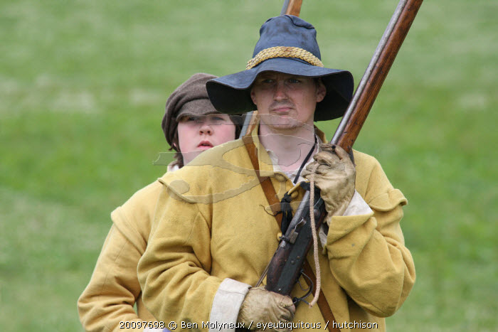 Musketeers at the reenactment of the battle of Faringdon in the English Civil war.English civil war British UK Musketeers rifleman Musket Faringdon reenactment men foot soldiers royalist roundhead Parliamentarians 17th century fighting England history historic historical battlefield army troops royal Parliament gun guns warfare authentic firing shooting British Isles European Great Britain History Historic Immature Male Man Guy Northern Europe Parliment United Kingdom