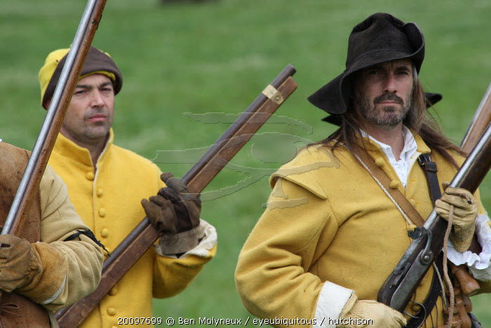 Musketeers at the reenactment of the battle of Faringdon in the English Civil war.English civil war British UK Musketeers rifleman Musket Faringdon reenactment men foot soldiers royalist roundhead Parliamentarians 17th century fighting England history historic historical battlefield army troops royal Parliament gun guns warfare authentic firing shooting British Isles European Great Britain History Historic Male Man Guy Northern Europe Parliment United Kingdom