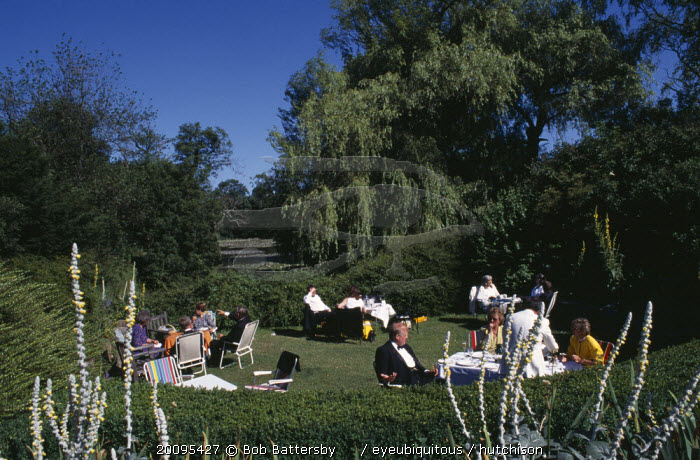 Opera attendees enjoying picnics in the gardens during Opera interval.Picnicking European Great Britain Northern Europe Performance UK United Kingdom British Isles Public Presentation