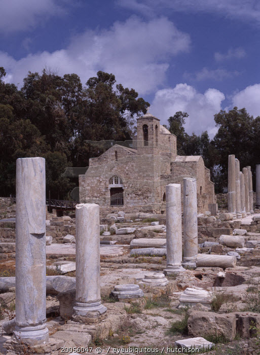 Twelth century Byzantine church. Part restored exterior in area of fallen masonry and ruined remains of standing columns.