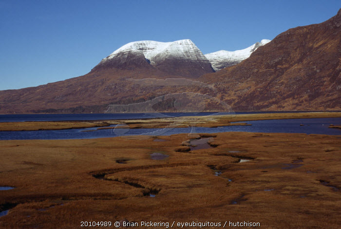Scotland, West Highlands, Torridon, Beinn Alligan Range with Tom-Na-Gruagaich at 922 metres, seen across Loch Torridon.