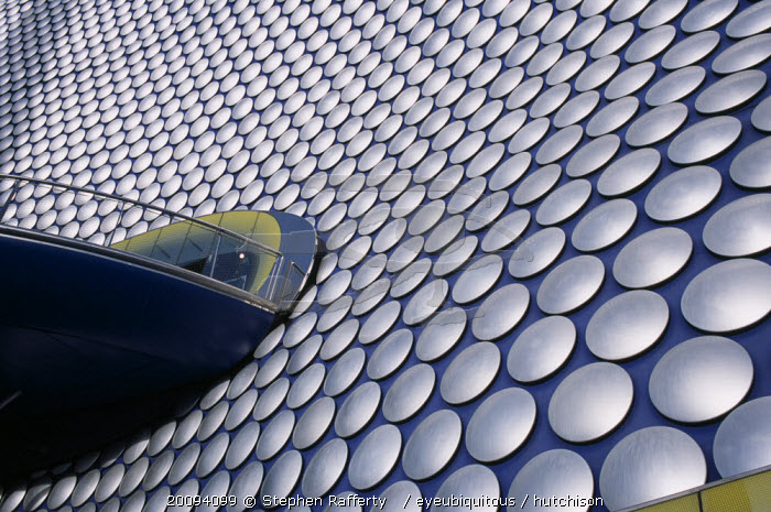 Selfridges Store at The Bullring Shopping Centre. Exterior detail of the spun aluminium discs.European Centre Great Britain Northern Europe UK United Kingdom Aluminum British Isles Center