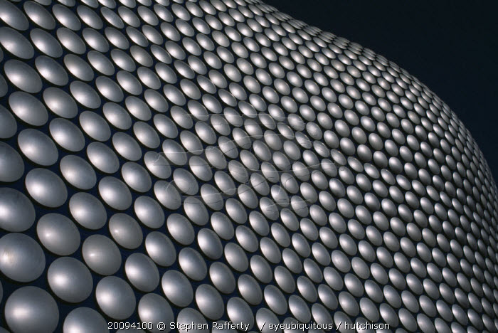 Selfridges Store at The Bullring Shopping Centre. Exterior detail of the spun aluminium discs. European Centre Great Britain Europe UK United Kingdom Aluminum British Isles Center Northern Europe