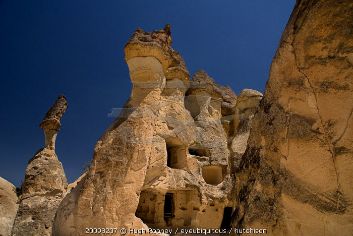 Turkey, Cappadocia, Goreme, Pasabag, A chapel dedicated to St. Simeon, and a hermit’s shelter is built into one of the fairy chimneys with three heads.