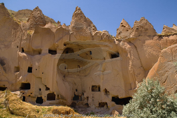 Turkey, Cappadocia, Zelve, Zelve Open Air Museum, Abandoned houses, Zelve is where 3 valleys of abandoned homes and churches converge, inhabited until 1952 when the valley was deemed too dangerous to live in any more. A monastery complex resembling an upside down bowl cut out of the rock.