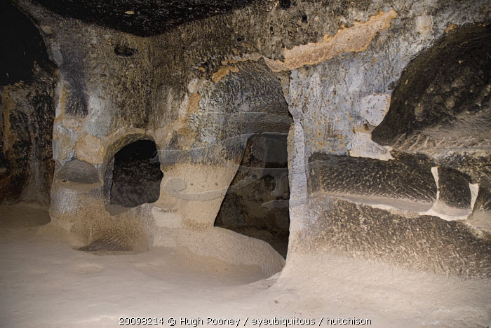 Turkey, Cappadocia, Zelve, Zelve Open Air Museum, Interior of Abandoned house, Zelve is where 3 valleys of abandoned homes and churches converge, inhabited until 1952 when the valley was deemed too dangerous to live in any more.