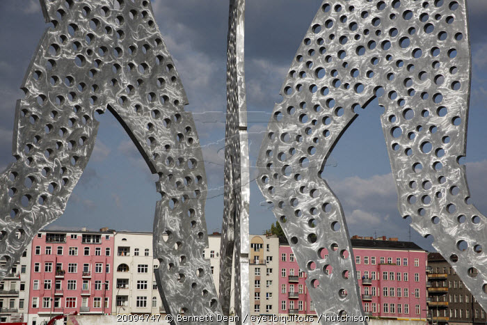 Germany, Berlin, Detail of Molecule Men sculpture 30 metres in height by Jonathan Borofsky on River Spree.