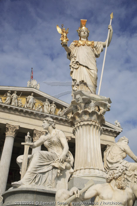 Austria, Vienna, Statue of Athena in front of Parliament.