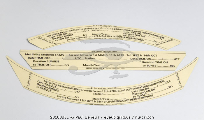 Climate, Weather, Measurements, Cards for a Campbell–Stokes sunshine recorder or Stokes sphere used by weather observers to monitor the hours of sunshine.