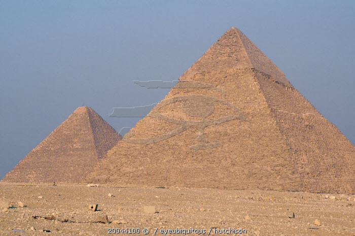 Great Pyramid of Cheops or Khufu partly seen behind Pyramid of Chephren also known as Khafre or Khephren.
