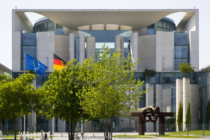 Germany, Berlin, Mitte, The German Chancellery the Bundeskanzleramt, the office of the Chancellor, in Tiergarten, designed by Charlotte Frank and Axel Schultes.