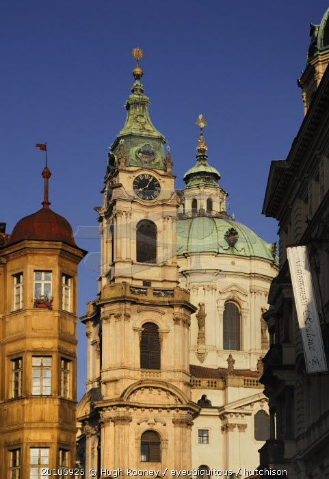 Czech Republic, Bohemia, Prague, St Nicholas Church from Mostecka Street in Mala Strana.