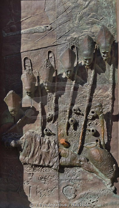 Slovenia, Ljubljana, Side entrance door of the Cathedral of St Nicholas, also known as the Ljubljana Door which is decorated with portraits of 20th century bishops of Ljubljana.