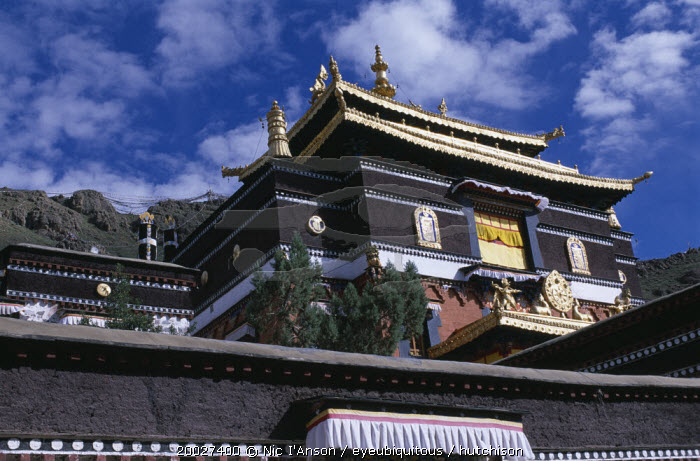 China, Tibet, Shigatse, Tashilhunpo Monastery exterior with golden roof dating from 1447.