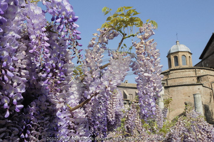 Italy, Lazio, Rome, Roman Forum, Foro Romano, Temple of Romulus with wysteria.