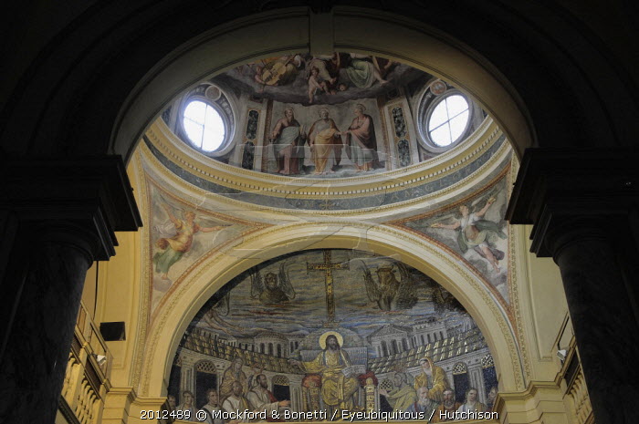 Italy, Lazio, Rome, Esquiline Hill, church of Santa Prudenziana, interior mosaic & altar.