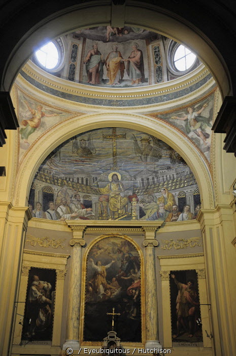 Italy, Lazio, Rome, Esquiline Hill, church of Santa Prudenziana, interior mosaic & altar.
