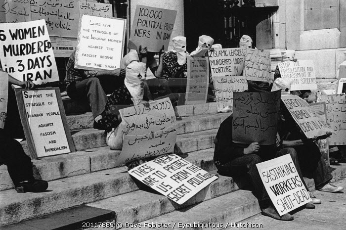 England, London, Anti Shah protests by hooded Iranian students with idenities hidden..