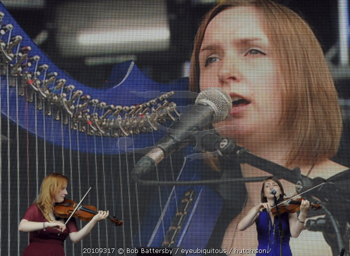 Music, Strings, Violin, fiddle players from the Shee band playing at Cropredy 2011.