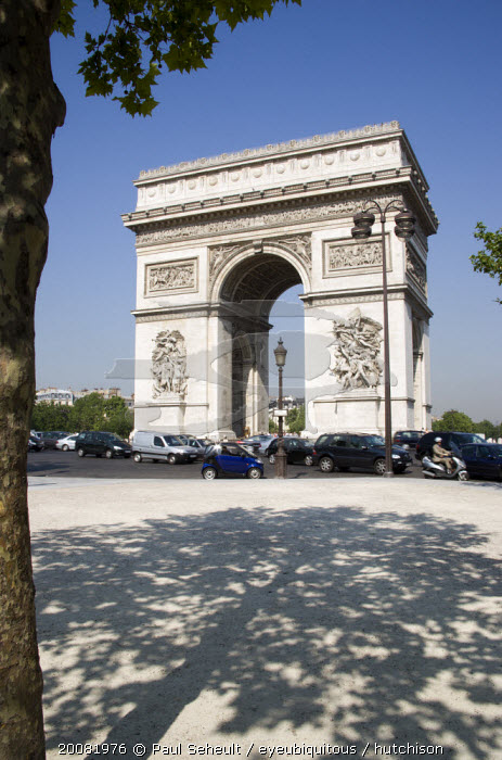 Busy traffic around the Arc de Triomphe in Place Charles de GaulleEuropean French Western Europe