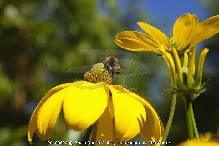 Bee on Rudbeckia laciniata Herbstsonne green headed coneflower.