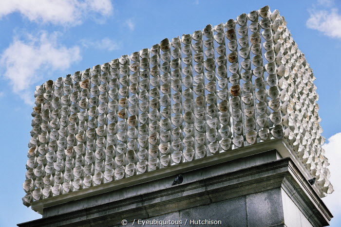 England, London, Trafalgar Square, The National Gallery and the fourth plinth with sculpture by artist Teresa Margolies.