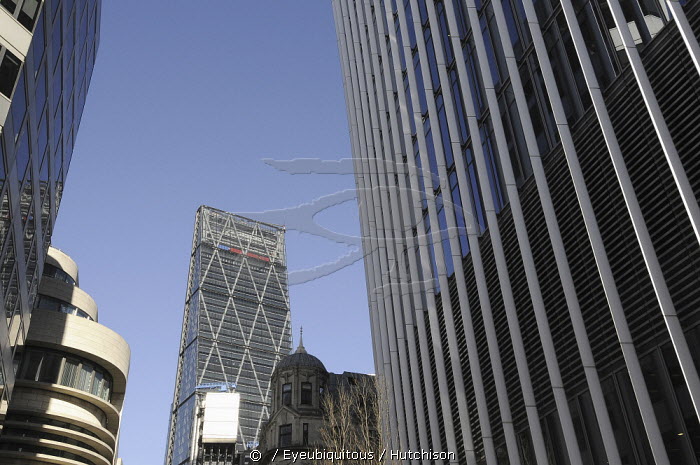 England, London, The Modern skyline of the City of London with The Cheesegrater and Walkie Talkie Buildings.