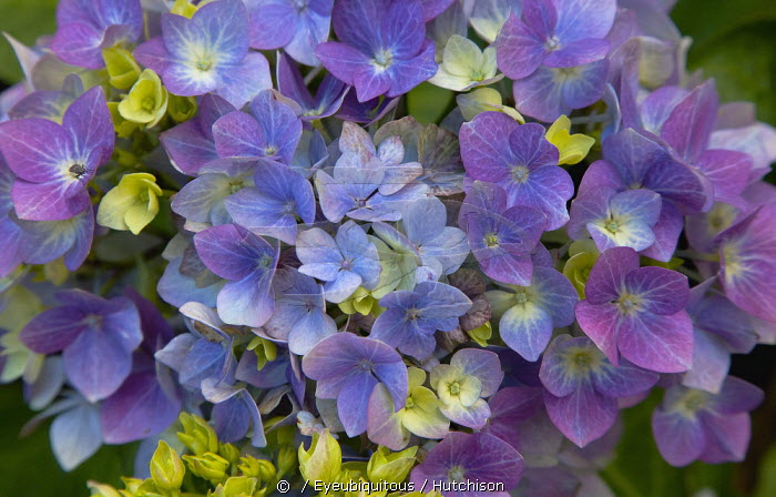 Plants, Flowers, Hydrangea, Close up of pink and mauve coloured flowers growing outdoor.