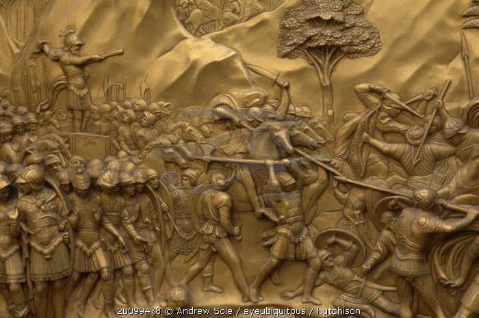 Bronze Doors with Relief Sculptures by Lorenzo Ghiberti, Florence Baptistry, Piazza del Duomo, Florence, Italy.