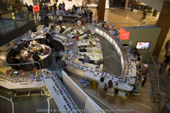 Bluewater shopping mall Yo Sushi conveyor Japanese restaurant.Great Britain Shopping Centre UK United Kingdom