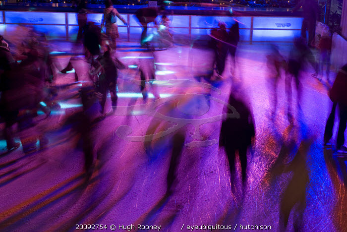 Ice Skaters in motion blur with multi coloured light on a winter ice rink in the city centreWinter Movement Skating Lighting effects Bayern Center Colored Deutschland European MŸnchen Western Europe