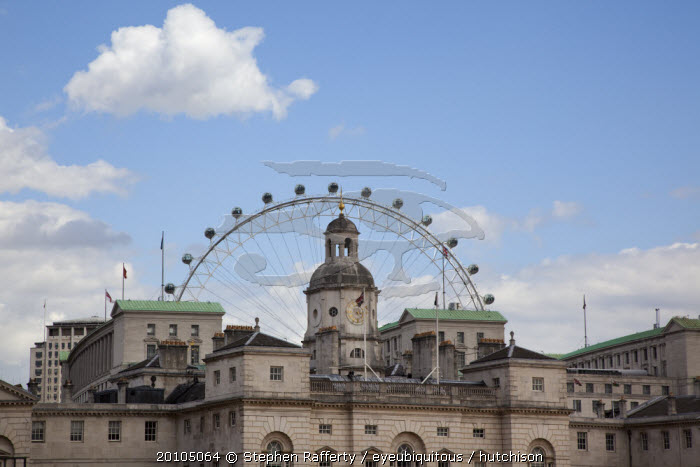 England, London, Westminster, Whitehall, Horse Guards Parade, with the London Eye behind.