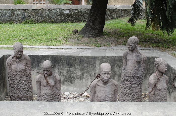 Tanzania, Zanzibar, Stone Town, Sculpture entitled Memory for the Slaves at the former slave market.